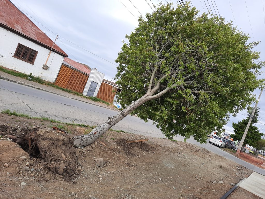 Agrupación ProVerde denuncia daños en arboles en calle Maipú, sector norte de Punta Arenas, en obras de reposición de veredas