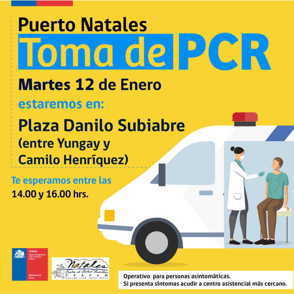 Toma de PCR continuará este martes 12 de enero en Puerto Natales Ovejero Noticias 11 de enero de 2021 NOTICIAS, PUERTO NATALES CompartirTwittearCompartirPin0 Compartir