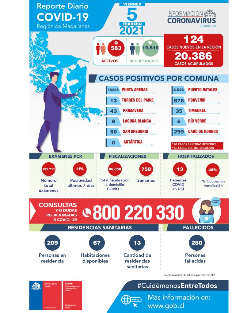 124 Casos de Coronavirus informó la autoridad sanitaria para Magallanes en las últimas 24 horas