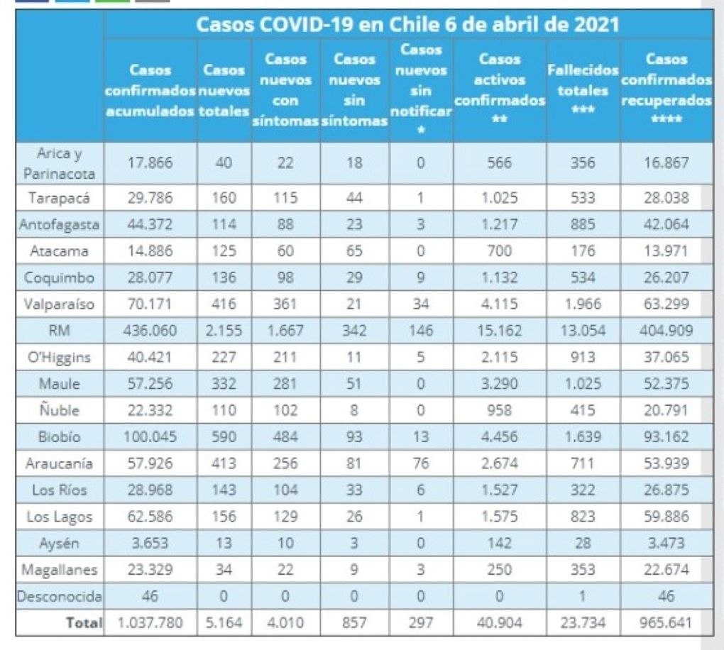 En relación a las cifras de hoy, informamos que de acuerdo con el sistema Epivigila, Magallanes reporta 34 casos nuevos: 28 corresponden a Punta Arenas, 2 de Puerto Natales , 1 de otra región y 3 sin notificación.