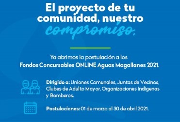 Aguas Magallanes recordó que para efectos de postulación se encuentra habilitada la plataforma a través del sitio www.aguasmagallanes.cl. Asimismo, se pueden realizar consultas al correo fondoconcursable@aguasmagallanes.cl.