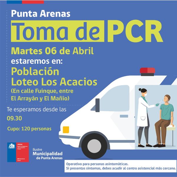 Este martes 6 de abril continúa la toma de PCR en distintos puntos de la comuna de Punta Arenas.
