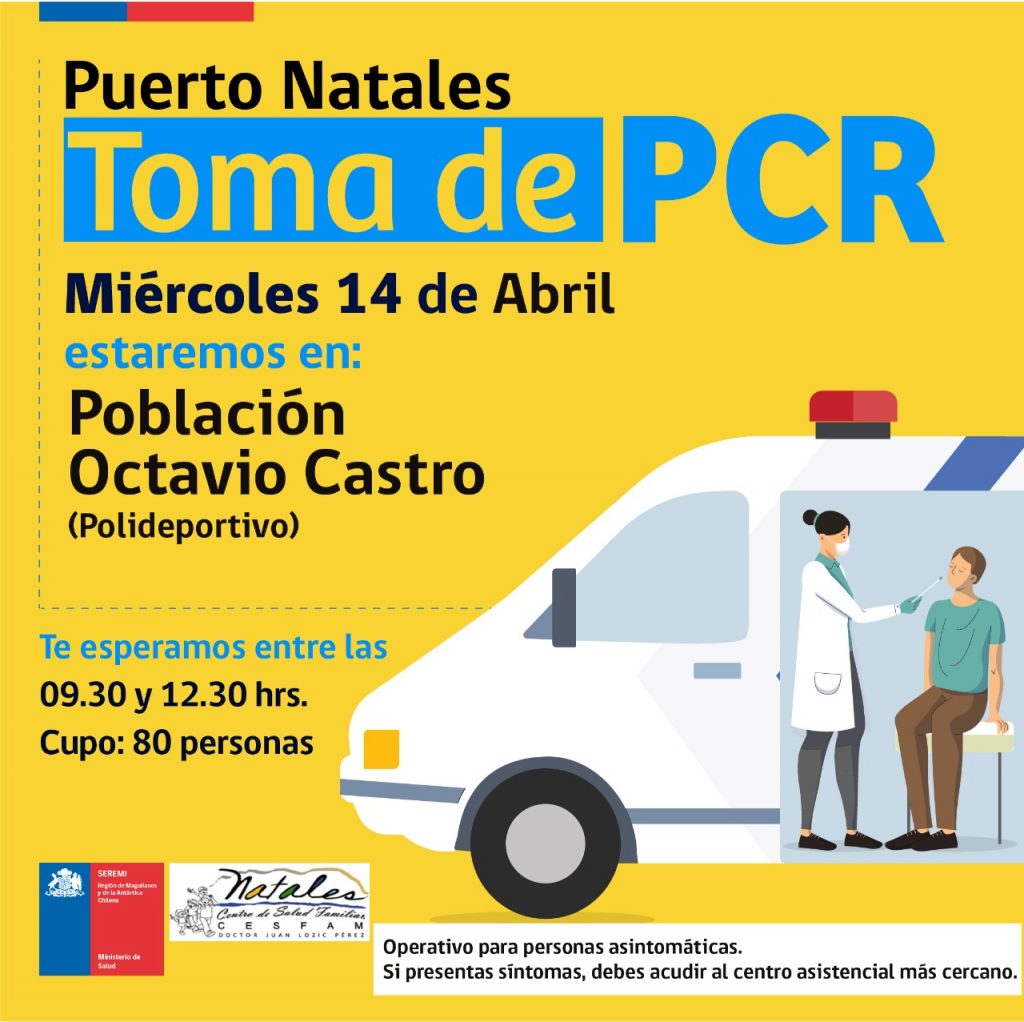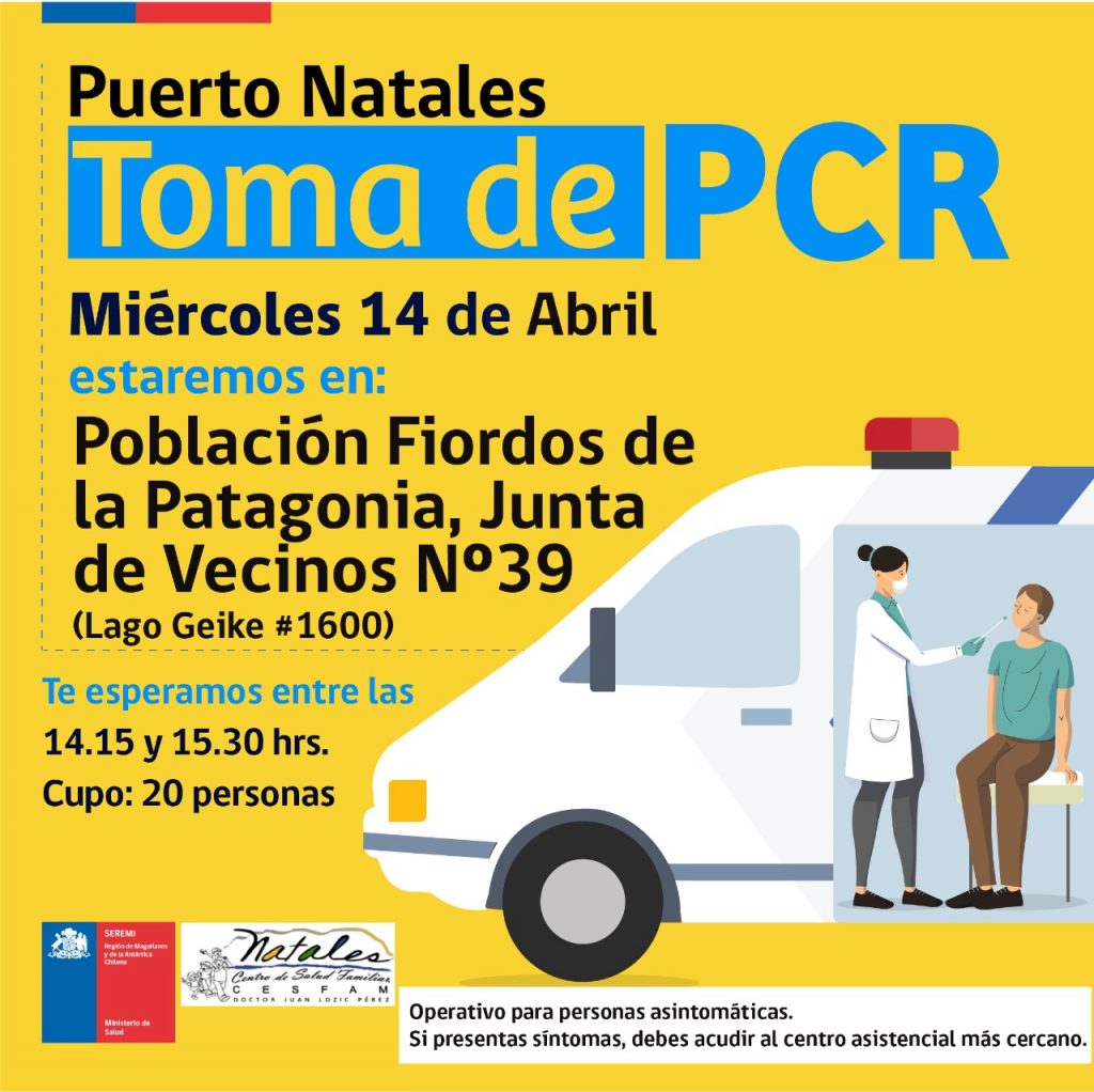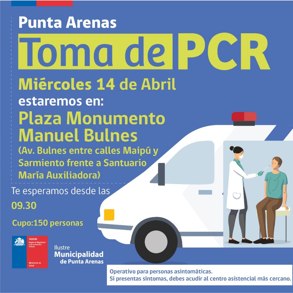 Este miércoles 14 de abril continúan operativos de toma de PCR en todas las ciudades de la región de Magallanes.