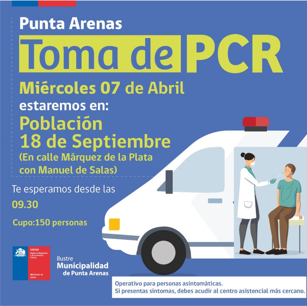 Hoy miércoles 7 de abril continúan en la región de Magallanes, distintos operativos de toma de PCR en Punta Arenas, Porvenir, Puerto Natales y Timaukel.
