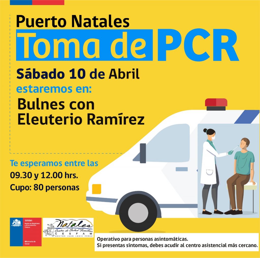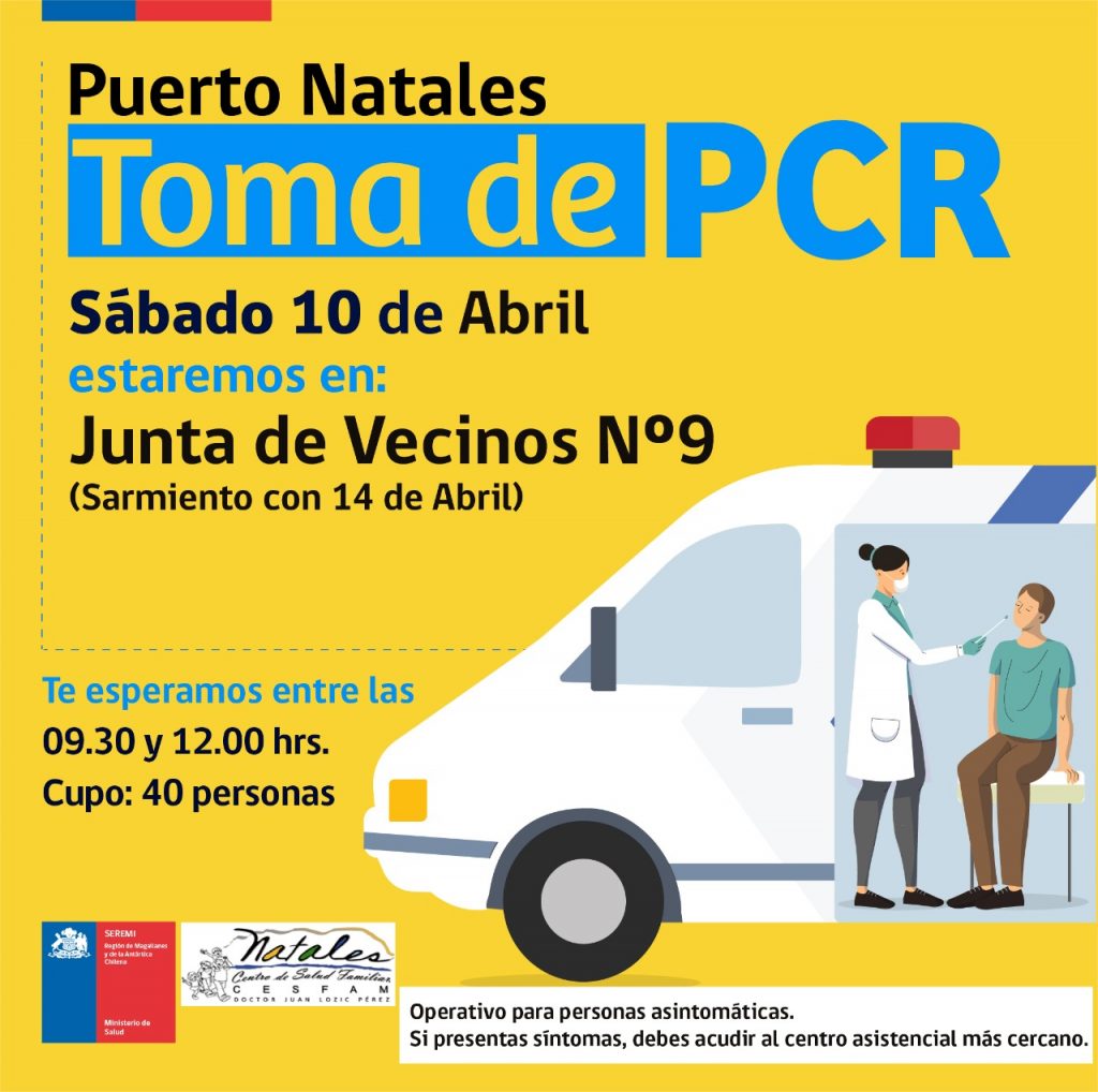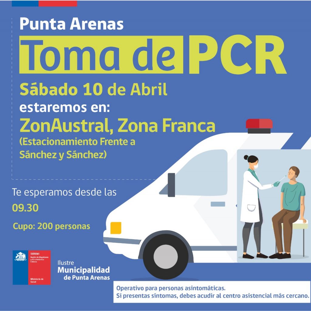Operativos de toma de PCR continúan este sábado 10 de abril en Punta Arenas y Puerto Natales Ovejero Noticias 10 de abril de 2021 NOTICIAS, PUERTO NATALES, PUNTA ARENAS CompartirTwittearCompartirPin0 Compartir