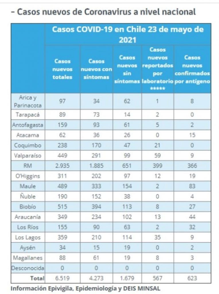Se registran 88 casos nuevos por covid19 este domingo 23 de mayo en la región de Magallanes. Del total de casos diarios hoy, hay 61 casos sintomáticos, 19 casos asintomáticos, 8 casos nuevos reportados por laboratorios y 3 por antígenos.