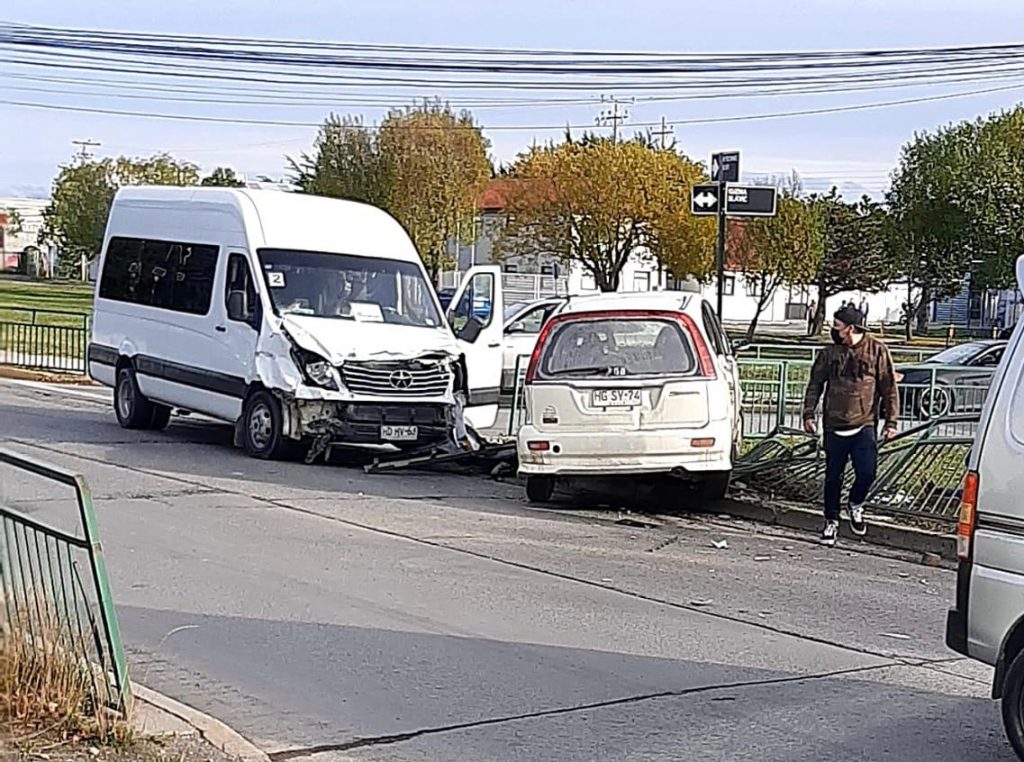 La colisión de alta energía entre un automóvil menor y un utilitario para transporte de pasajeros, produjo daños considerables en los vehículos y destruyó un tramo de las barreras de la avenida Bulnes. Uno de los lesionados es un recién nacido junto a su madre y el conductor de uno de los vehículos accidentados, según informo Pedro Alvarado capitán de la 3a compañía de Bomberos. La lactante accidentada no venía en silla dentro del vehículo.