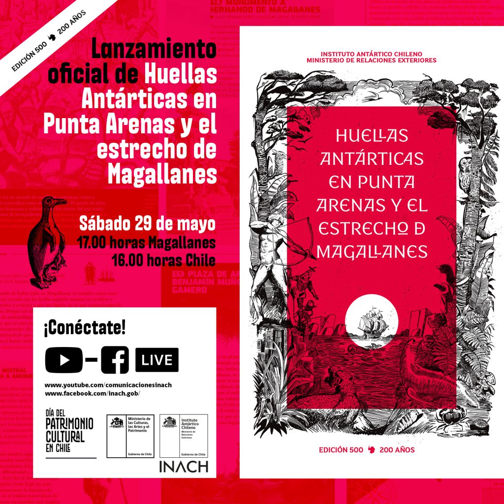 Punta Arenas, 27 de mayo de 2021.- En el marco del Día del Patrimonio Cultural en Chile que se realizará el próximo fin de semana (28, 29 y 30 de mayo), el Instituto Antártico Chileno (INACH) realizará el lanzamiento oficial de la edición especial 500 y 200 años de la guía “Huellas Antárticas en Punta Arenas y el estrecho de Magallanes”, un relato histórico-turístico con un marcado énfasis en la conmemoración de los 500 años de la primera circunnavegación del planeta por el estrecho de Magallanes y de los 200 años de las primeras exploraciones polares.