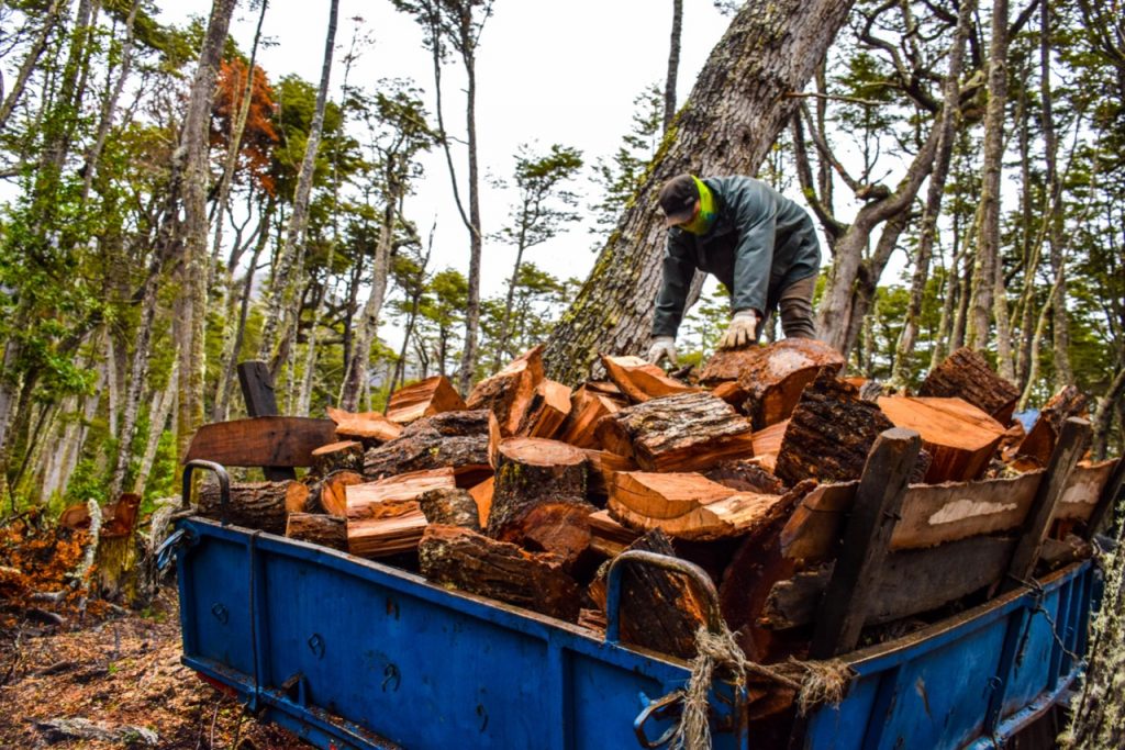 “Es por área de limpieza lo que se está trabajando ahora, así que se aprovecha todo lo que está tirado. Acá no se botan árboles, así que bien porque se va limpiando el bosque, se ve más ordenado, se aprovecha la leña. Hay mucha leña que con el tiempo se pudre, se echa a perder y no se consume, así que es un muy buen proyecto”, detalla Llaipen.