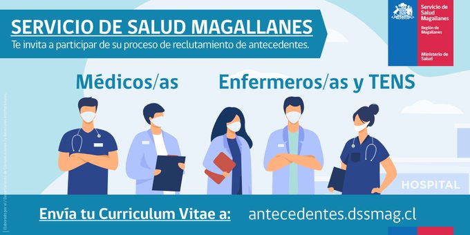 El Servicio de Salud Magallanes difundió este lunes 10 de mayo un llamado a concurso para participar en el proceso de reclutamiento de antecedentes en la página http://antecedentes.dssmag.cl