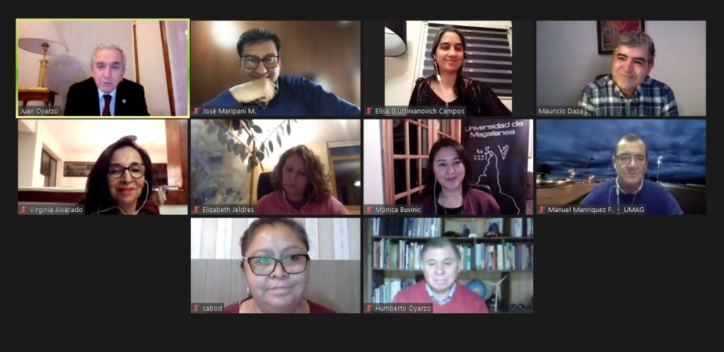 Extendiendo una invitación a los/as cinco constituyentes electos/as de la región, el equipo directivo de la Universidad de Magallanes, encabezado por el rector Juan Oyarzo, pudo sostener, este martes, un primer encuentro en modalidad telemática, con tres de ellos/as: Elisa Giustinianovich, Mauricio Daza y Lidia González (Rodrigo Álvarez y Margarita Vargas se excusaron por compromisos previamente pactados), reunión que tuvo por objetivo dialogar acerca de la realidad que vive el plantel estatal en términos de desarrollo y, a su vez, plantear la disposición institucional de seguir aportando con procesos participativos que puedan servir de insumo para el trabajo de quienes serán las y los representantes de Magallanes en la Convención Constitucional que parte en julio próximo.