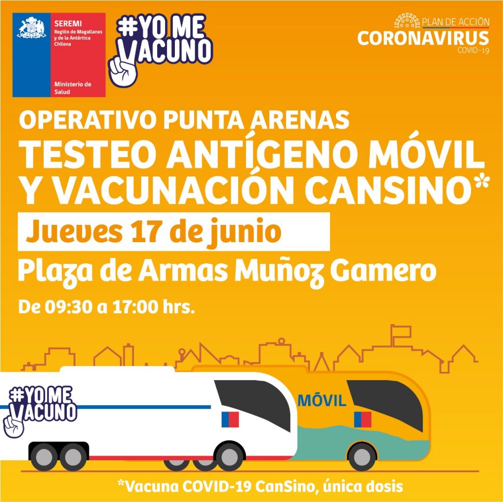 Operativos de Toma de PCR y Testeo de Antígeno y vacunación, se efectuarán en todas las localidades de la región de Magallanes, este jueves 17 de junio.