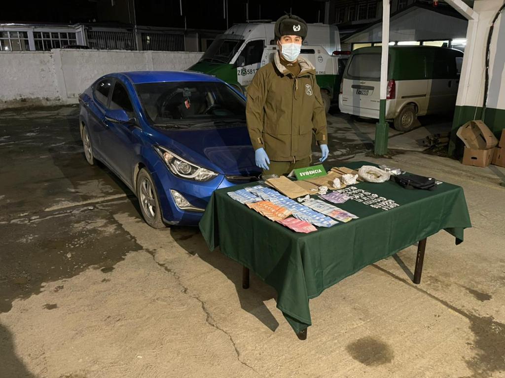 Una llamada anónima a la Central de Carabineros, permitió que personal policial de Puerto Natales, lograra sacar de las calles a un hombre que se dedicaba a la venta de drogas. Tras la información obtenida, rápidamente se montó un patrullaje, que permitió divisar un vehículo, marca Hyundai, modelo Avante que al ser controlado su chofer, se pudo establecer que mantenía cannabis sativa y clorhidrato de cocaína oculta en su interior.
