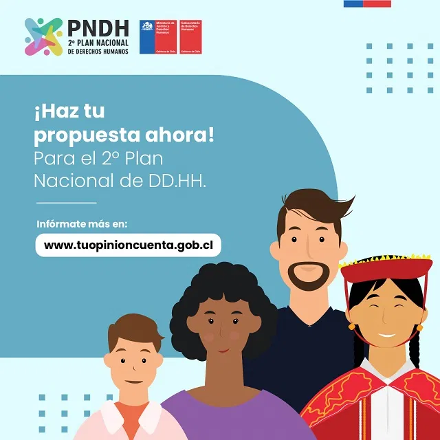 Con el objetivo de recoger el máximo de opiniones e ideas de la sociedad civil, la Secretaría Regional Ministerial de Justicia y Derechos Humanos informó que se amplió el plazo para contribuir al proceso participativo por la construcción del Segundo Plan Nacional de Derechos Humanos (PNDH), a través de la plataforma digital https://tuopinioncuenta.minjusticia.gob.cl/.