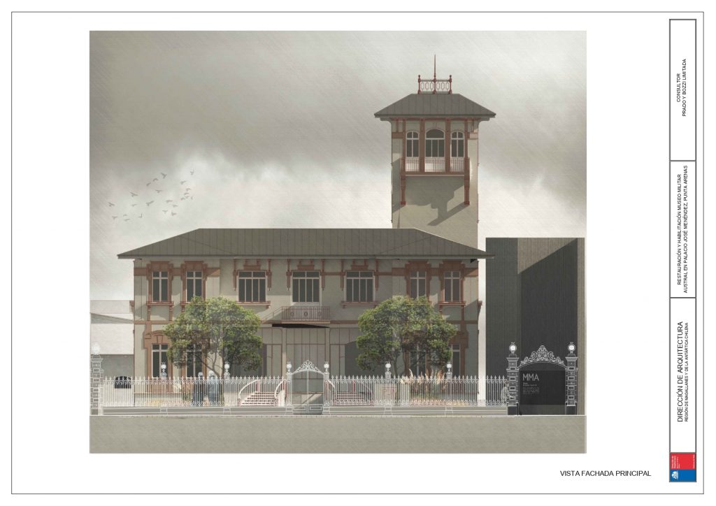 Miércoles 19 de agosto, 2021. El área de Inversiones de la Secretaría Regional Ministerial de Desarrollo Social y Familia de Magallanes y de la Antártica Chilena otorgó la recomendación satisfactoria a la etapa de ejecución del proyecto sobre restauración y habilitación del futuro Museo Militar Austral, que se emplazará en el palacio José Menéndez de Punta Arenas.