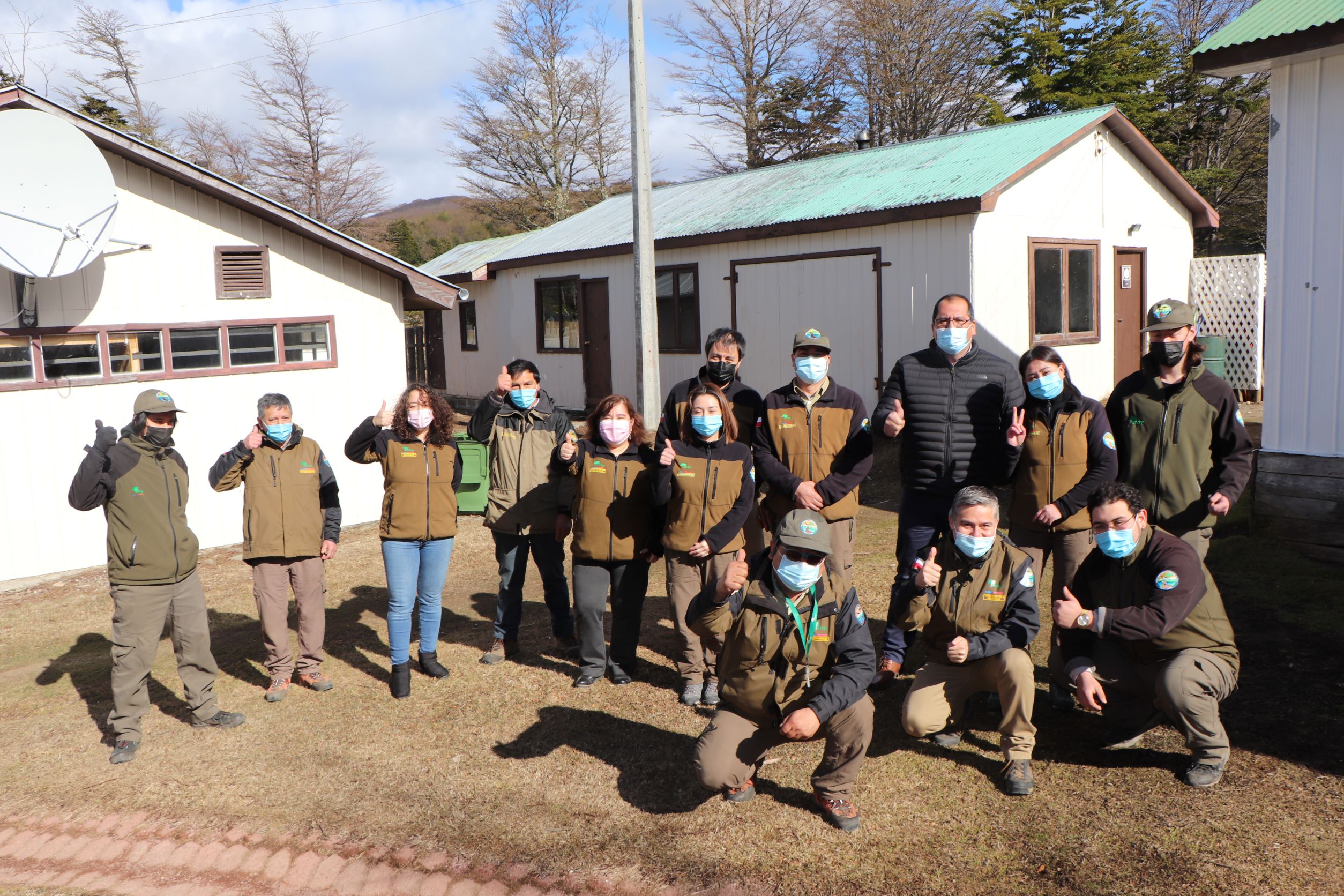 Por tal motivo, el director regional de CONAF, Mauricio Vèjar, junto al equipo del Departamento de Áreas Silvestres Protegidas se trasladó hacia la Reserva Nacional Magallanes para, desde ese punto, enviar un saludo a todo el personal guardaparques que se distribuye en las diferentes unidades a lo largo del territorio regional tales como el Parque Nacional Torres del Paine, Parque Nacional Pali Aike, Reserva Nacional Magallanes, Reserva Nacional Laguna Parrillar, Parque Nacional Bernardo O’Higgins, Monumento Natural Los Pingûinos.