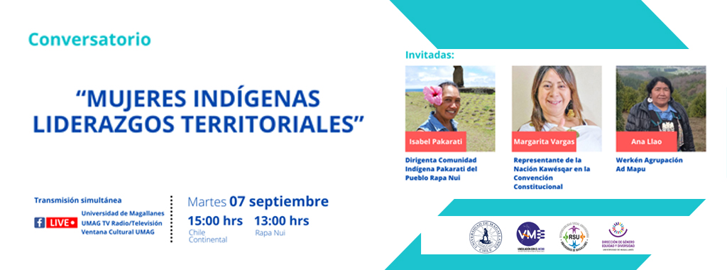 Acercar a la comunidad el relato de la experiencia de mujeres indígenas lideresas en el territorio nacional, orientado a sus historias personales, filosofía y rol comunitario, es el objetivo que persigue el conversatorio “Mujeres Indígenas, liderazgos territoriales”, instancia organizada por la Oficina de Inclusión en conjunto con la Dirección de Género y de Extensión Universitaria de la Universidad de Magallanes (UMAG) y además con el apoyo de la agrupación local Weche Pepiukëlen, para conmemorar, en la región, el Día Internacional de la Mujer Indígena (5 de septiembre).