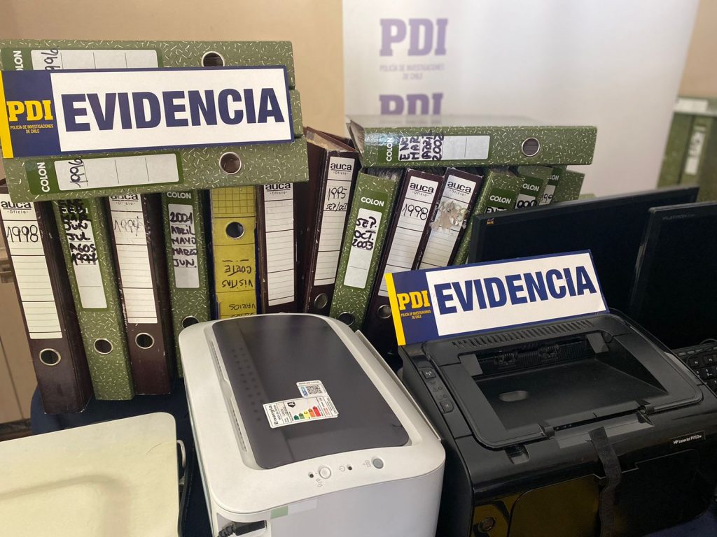 Los detectives incautaron desde las viviendas de los imputados equipos computacionales, impresoras y un scanner, todo avaluado en aproximadamente dos millones de pesos. Además, fueron recuperados archivadores que contienen documentación del Conservador de Bienes Raíces.