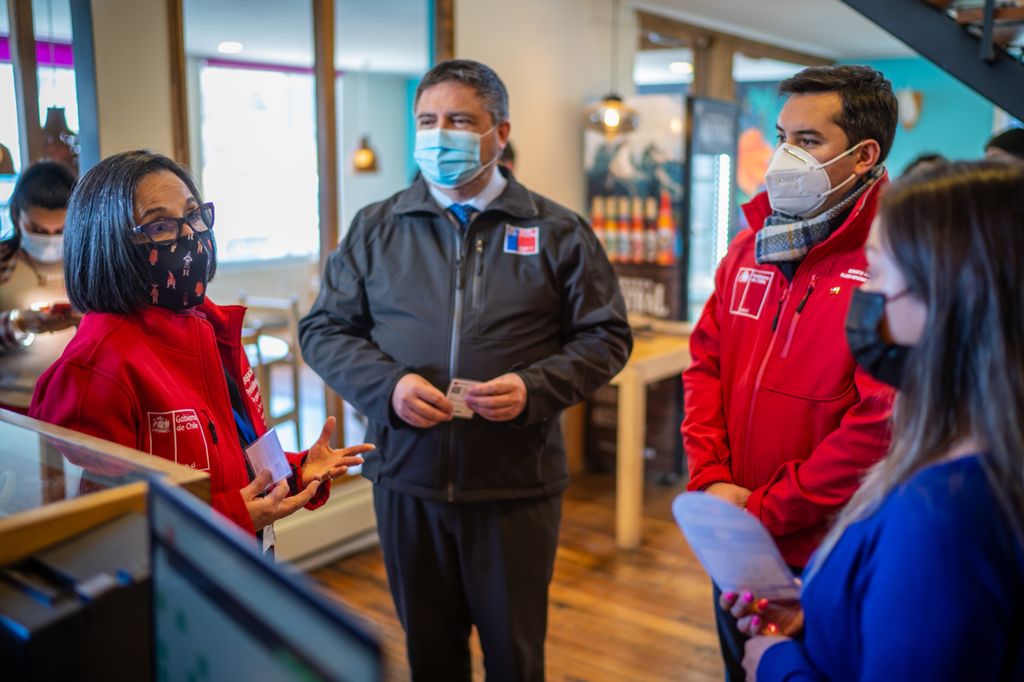 Como parte de las acciones preventivas de Covid-19 que desarrolla la autoridad sanitaria en nuestra región, la Delegada Presidencial Regional (S), Margarita Norambuena, junto al Seremi de Salud (S) Eduardo Castillo y el Seremi de Gobierno, Ricardo Hernández, se trasladaron hasta el Café Amorío de Punta Arenas, con el objetivo de reforzar la correcta implementación del pase de movilidad en los establecimientos que disponen de espacios cerrados, donde debe ser requerido a todos los clientes y escaneado al momento del ingreso.