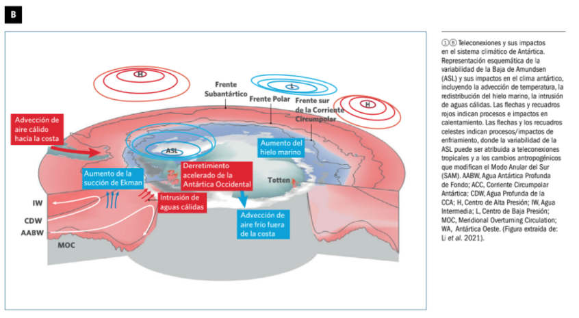 Algunos modelos numéricos han demostrado que la Baja de Amundsen (ASL) es responsable de una parte importante del cambio observado en la Antártica Occidental, donde una ASL más profunda, junto a la fase positiva del Modo Anular del Sur (SAM) induce un incremento en el bombeo de Ekman, generando una mayor intrusión de las Aguas Cálidas Profundas de la Corriente Circumpolar Antártica (CCA), generando un mayor derretimiento de las plataformas glaciares en el margen occidental de Antártica (fig. 1).