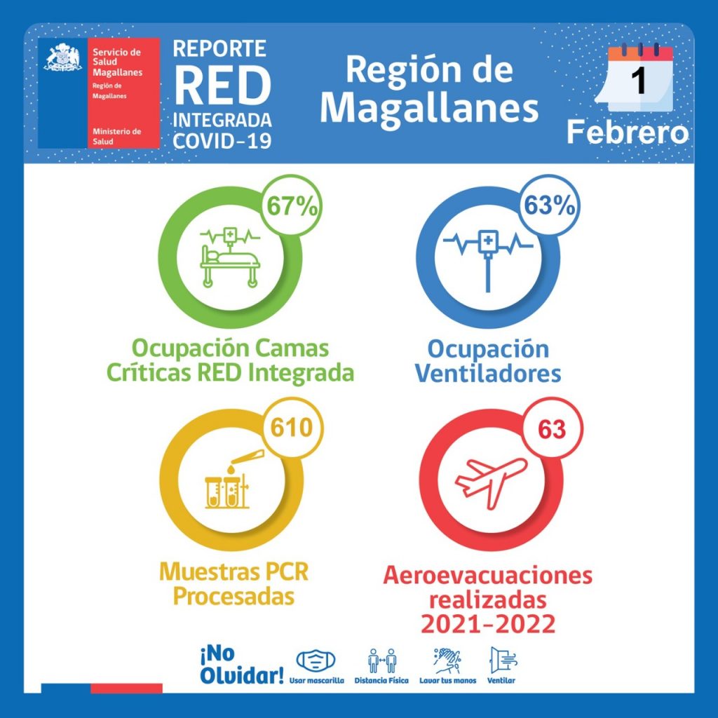 Estado de la red integrada de Salud Covid19 en la región de Magallanes, al martes 1 de febrero