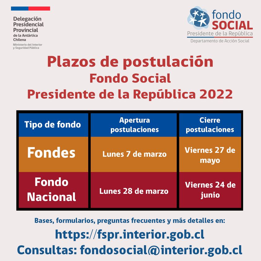 Delegada Presidencial de la Provincia Antártica comunica llamado a postular al Fondo Social Presidente de la República