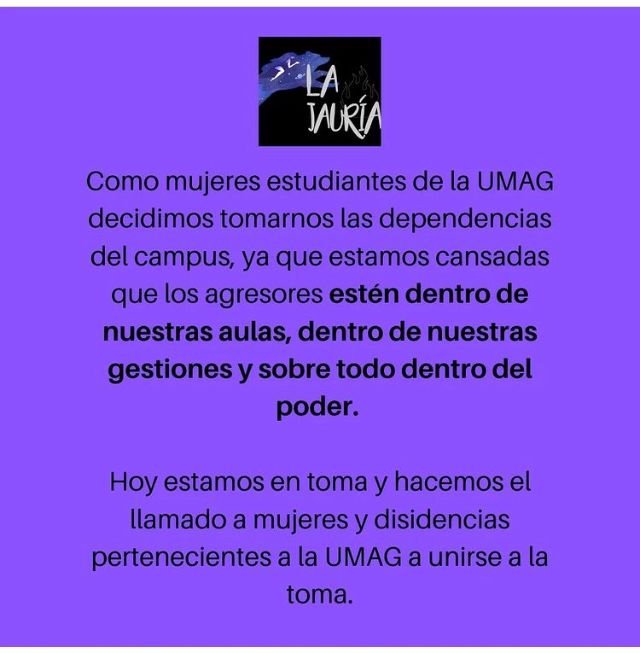 Un comentario en «Estudiantes feministas de la Universidad de Magallanes se han tomado el campus de Avenida Bulnes»