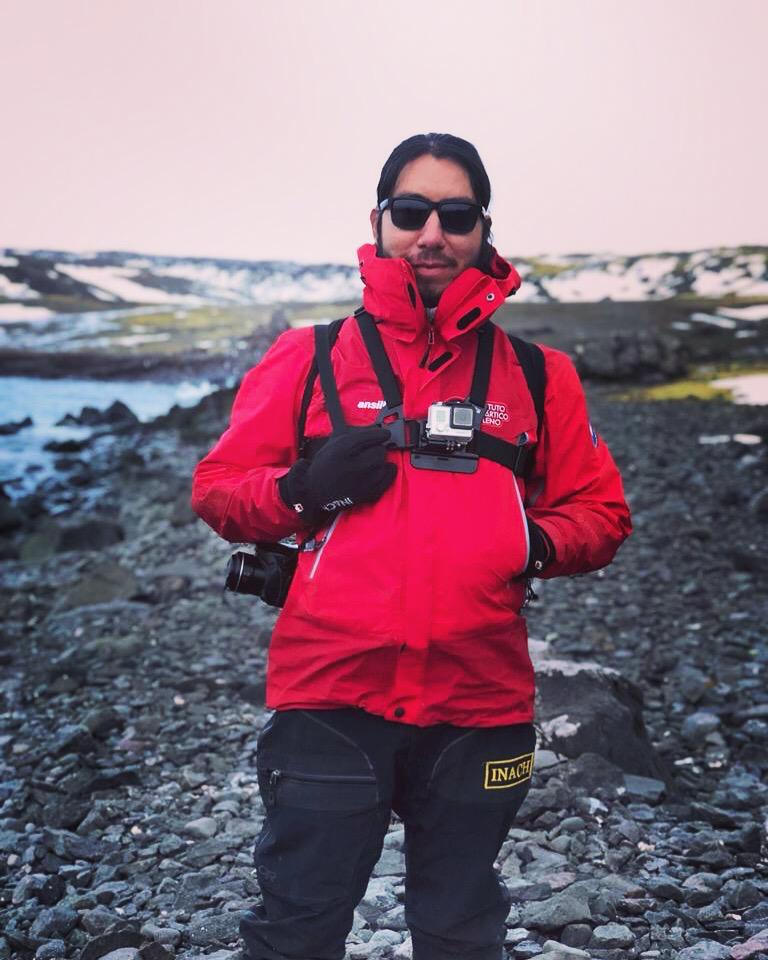 Uno de los investigadores que se encuentran en territorio antártico es Emilio Alarcón, biólogo marino de la Universidad de Concepción y asistente de investigación del Centro de Investigación Dinámica de Ecosistemas Marinos de Altas Latitudes (Centro IDEAL) y Centro de Investigación en Ecosistemas de la Patagonia (CIEP). Alarcón está en bahía Fildes para continuar con el monitoreo regular de variables ambientales en el sistema costero marino de bahía, particularmente realizando mediciones del grado de acidez del agua de mar (pH), además de la recolección de agua superficial para su posterior análisis de alcalinidad total, concentración de nutrientes y concentración de clorofila (como proxy de la biomasa fitoplanctónica, base de la trama trófica en sistemas marinos).