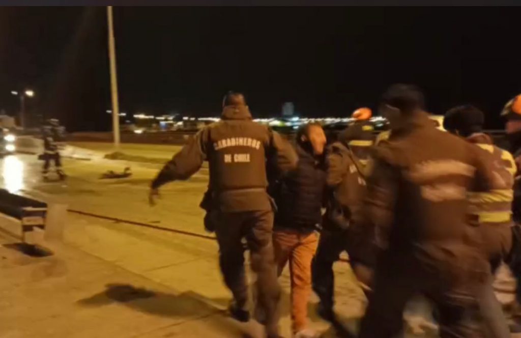 El acompañante del conductor fue detenido por Carabineros, mientras que el conductor herido fue trasladado por personal del SAMU al Hospital Clínico, mientras concurrieron al lugar del accidente personal de Seguridad Ciudadana de la Municipalidad, de la empresa GASCO y de la Unidad de Rescate de la 1a Compañía de Bomberos.