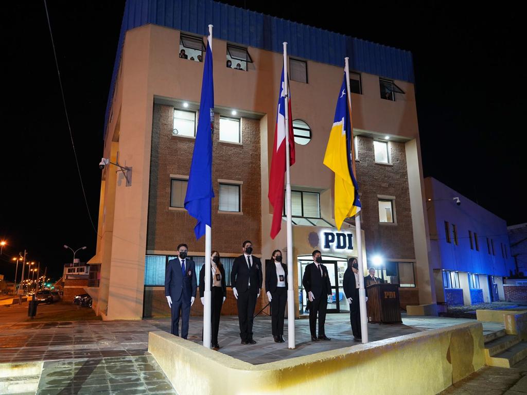 La actividad, encabezada por el jefe de la Región Policial de Magallanes y de la Antártica Chilena, contó con la asistencia de autoridades regionales y más de 100 integrantes de la Policía de Investigaciones de Chile entonaron, en solemne formación el Himno Nacional y el Himno del Detective, al son de los acordes de la banda instrumental de la V División de Ejército.