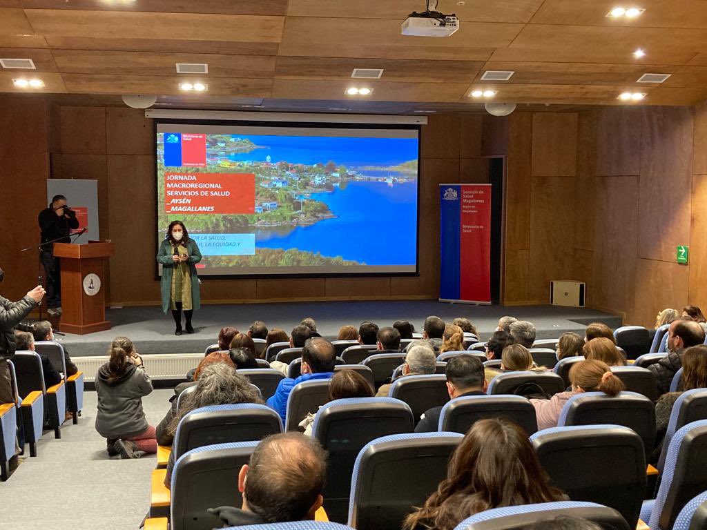 Como parte de su visita a la región de Magallanes, la Ministra de Salud #MinistraSalud Begonia Yarza, del director regional de FONASA, autoridades regionales de Aysén y Magallanes, Alcaldes de la región, autoridades regionales y representantes de la sociedad civil participan de la III Jornada Macroregional, en el salón auditorium del CADI UMAG en Punta Arenas.