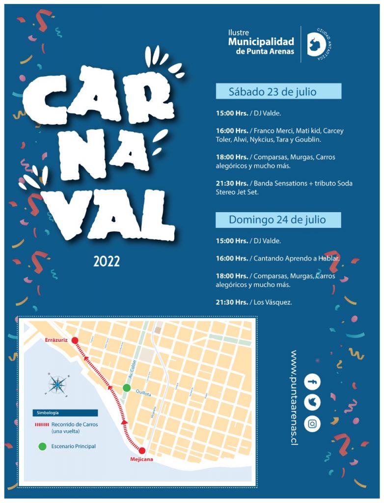 El siguiente es el programa de actividades del Carnaval de Invierno 2022 en Punta Arenas.