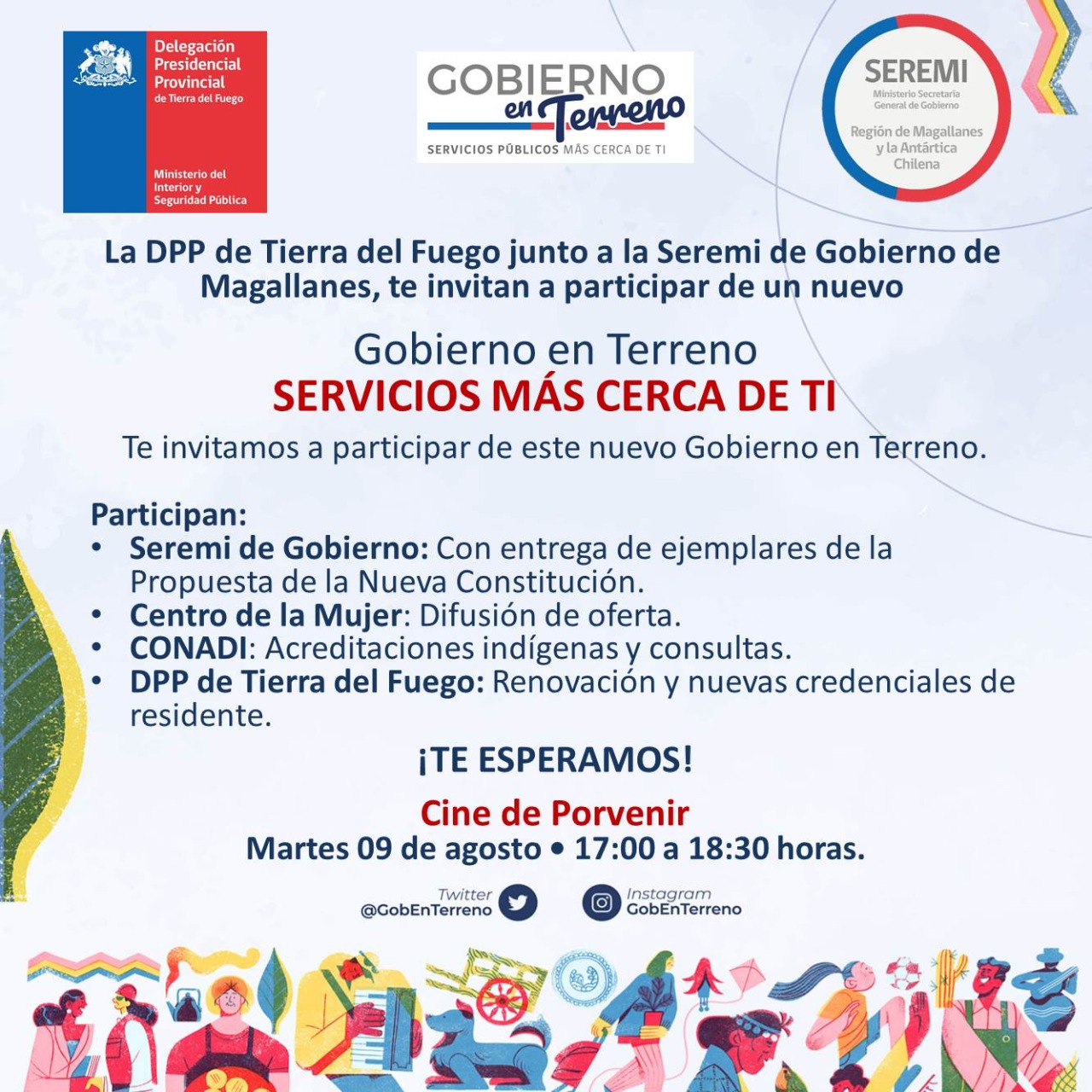 Gobierno en Terreno realizan hoy en Porvenir la SEREMI de Gobierno y Delegación Provincial de Tierra del Fuego Ovejero Noticias 9 de agosto de 2022 GOBIERNO, NOTICIAS, PROVINCIA DE TIERRA DEL FUEGO, TITULARES Una jornada especial de Gobierno en Terreno realizan hoy martes 9 de agosto en Porvenir los equipos de la SEREMI de Gobierno y Delegación Provincial de Tierra del Fuego. CompartirTwittearCompartirPin0 Compartir
