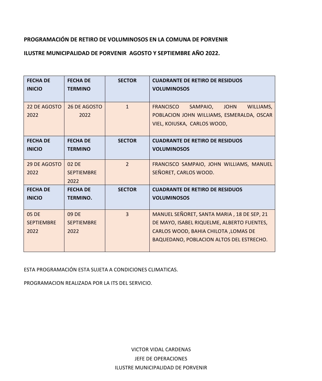 Municipalidad de Porvenir anuncia programa de retiro de residuos sólidos en agosto y septiembre Ovejero Noticias 17 de agosto de 2022 MUNICIPALIDAD DE PORVENIR, NOTICIAS, PORVENIR CompartirTwittearCompartirPin0 Compartir