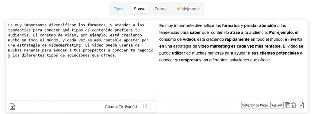 Lo bueno de las herramientas de parafraseo es que no solo evitan el plagio sino que también aseguran la simplicidad. Por supuesto, algunos parafraseadores ofrecen varios modos de contenido, incluso avanzados. Pero depende de usted obtener dos beneficios, tales como: