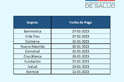 Y las fechas de pago informadas por cada una de las Isapres son: