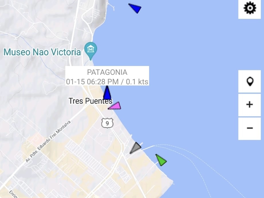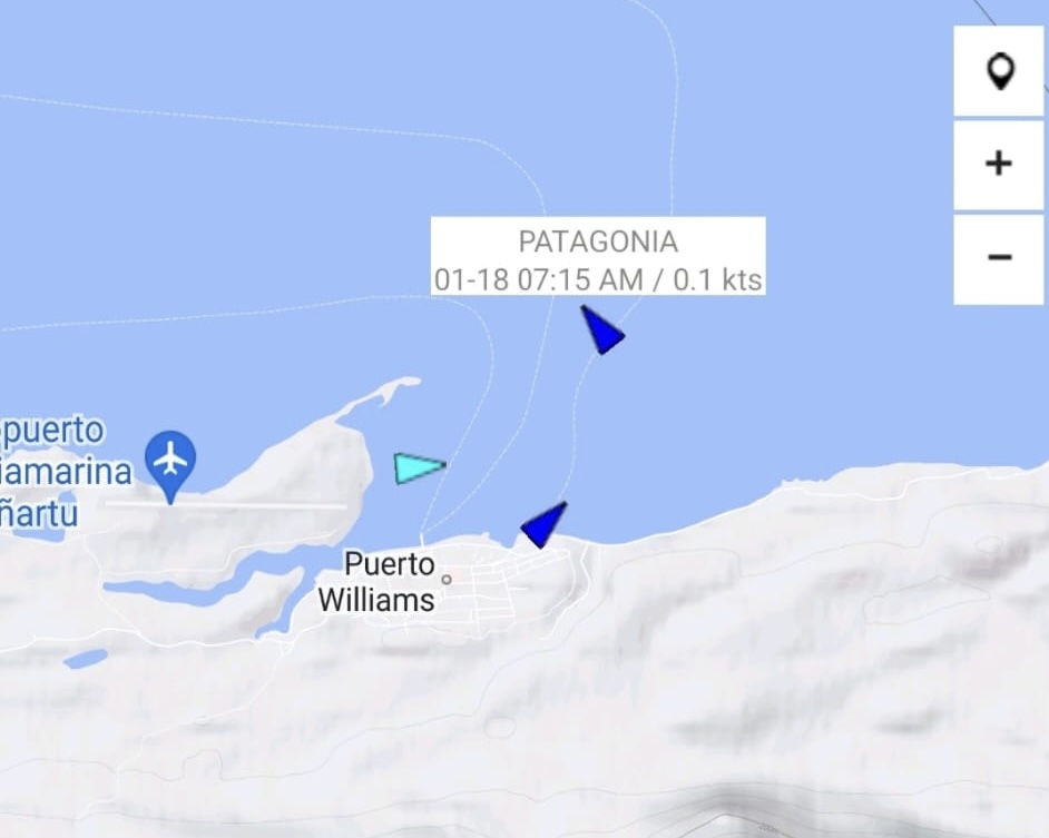 El concejal además demostró que el ferry Patagonia se encontraba en la había de Punta Arenas con fecha 15 de enero, pero que emprendió rumbo a Puerro Williams, situación que se puede corroborar mediante la aplicación Find Chip, y tal cuál lo muestra en la gráfica a continuación.