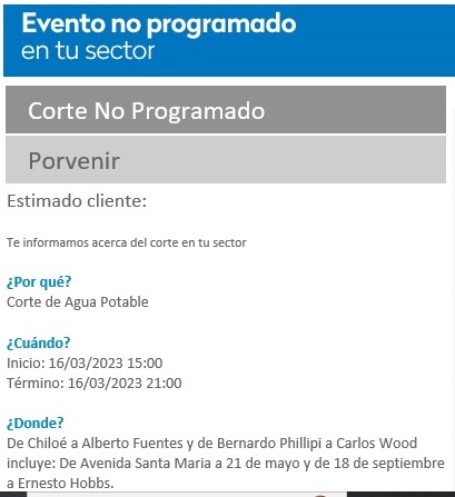 Se informa desde Aguas Magallanes sectores que se enuncian en imagen.