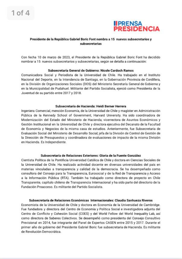 Faltando un día para que el Presidente Gabriel Boric cumpla un año desde que asumió la Presidencia de la República, se realizó este viernes 10 de marzo un cambio de Gabinete con 5 ministros nuevos, a saber:
