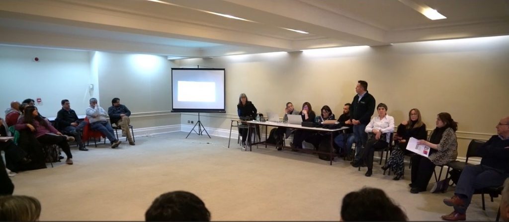 En efecto, en la sala de reuniones del Teatro Municipal se realizó una sesión de trabajo entre el Alcalde Claudio Radonich y algunos concejales, con representantes del Colegio de Profesores de Punta Arenas, el Presidente del Gremio de Trabajadores de la Corporación Municipal, CORMUPA, de los Asistentes de la Educación, la SEREMI del Trabajo Doris Sandoval y el SEREMI de Educación Valentín Aguilera, donde se analizaron los distintos aspectos del problema que afecta a los docentes, se adoptó el acuerdo de implementar una mesa técnica el lunes 12 de junio con los profesores.