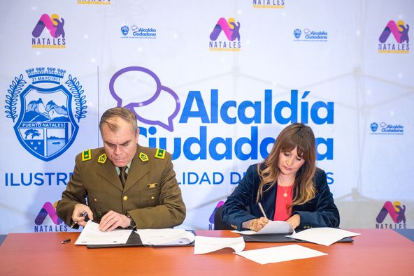 Otro aspecto importante de la actividad realizada hoy, fue la firma del convenio OS-14 entre la Municipalidad de Natales y Carabineros de Chile. Esta iniciativa, tiene como misión potenciar y fortalecer la coproducción de seguridad pública a nivel local a través del trabajo coordinado con las municipalidades del país. Este acuerdo, entre otras ventajas, permite que funcionarios de Carabineros aborden el vehículo de seguridad municipal, y de este modo se amplíe la cobertura preventiva, porque se complementan recursos y atribuciones.