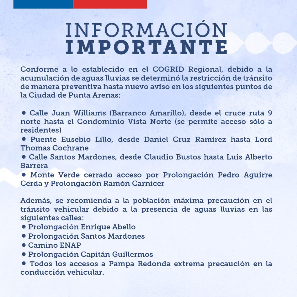 causa de las precipitaciones en la Ciudad de Punta Arenas.»