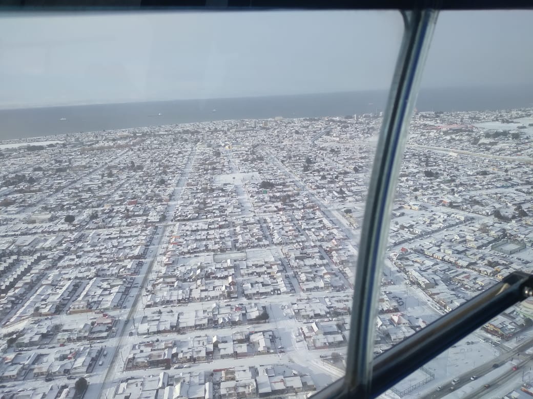 Un sobrevuelo de más de 45 minutos sobre Punta Arenas, sectores suburbanos, rurales y la ruta 9 hasta el kilómetro 50, realizaron el Delegado Presidencial José Ruiz Pivcevic, el general de Carabineros Claudio Pizarro, el director de Senapred Juan Carlos Andrades y el seremi e Transportes Rodrigo Hernández, en una aeronave de la institución policial.