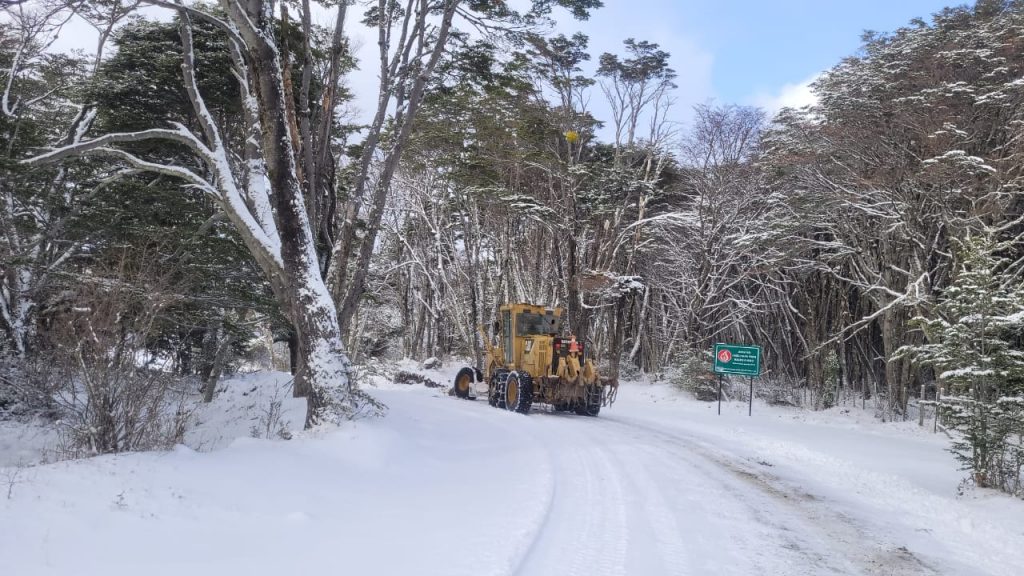 En las imágenes se observan los trabajos que se realizaron en el despeje de nieve en el sector San Juan, al sur de Punta Arenas.