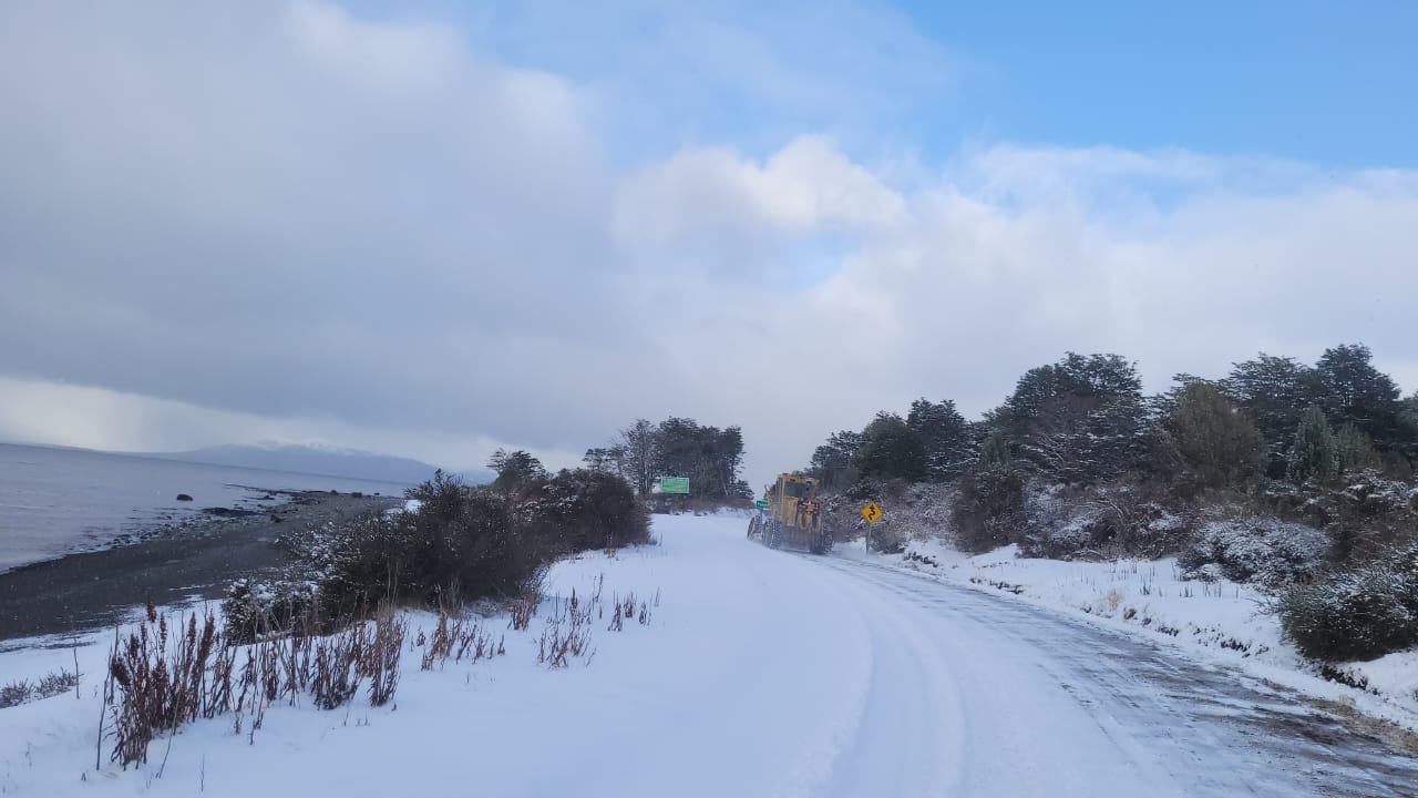 En las imágenes se observan los trabajos que se realizaron en el despeje de nieve en el sector San Juan, al sur de Punta Arenas.