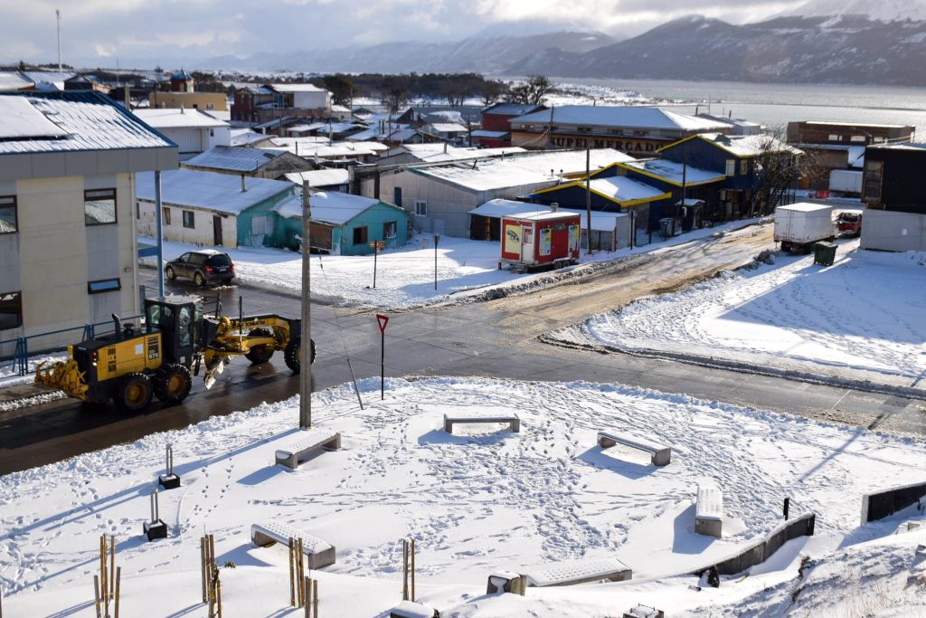 Como es habitual cuando surge un período meteorológico relativamente estable entre las precipitaciones de nieve, vecinas y vecinos de Puerto Williams han salido de sus hogares para, con pala en mano, retirar la nieve y esparcir sal en las veredas. Una de aquellas personas fue Erica Meneses, quien junto a su hijo limpió las afueras de la casa esquina donde vive, ubicada justo frente a una nevada Plaza Bernardo O’Higgins.