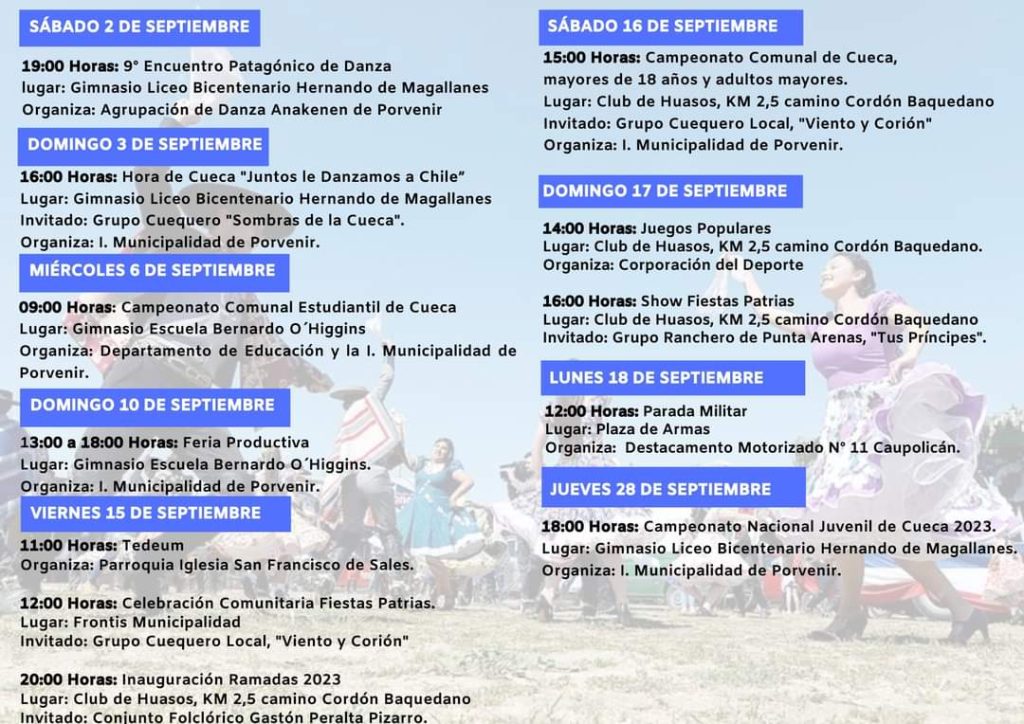 Esta mañana de viernes 1 de septiembre la Municipalidad de Porvenir ha difundido el siguiente programa de festejos: