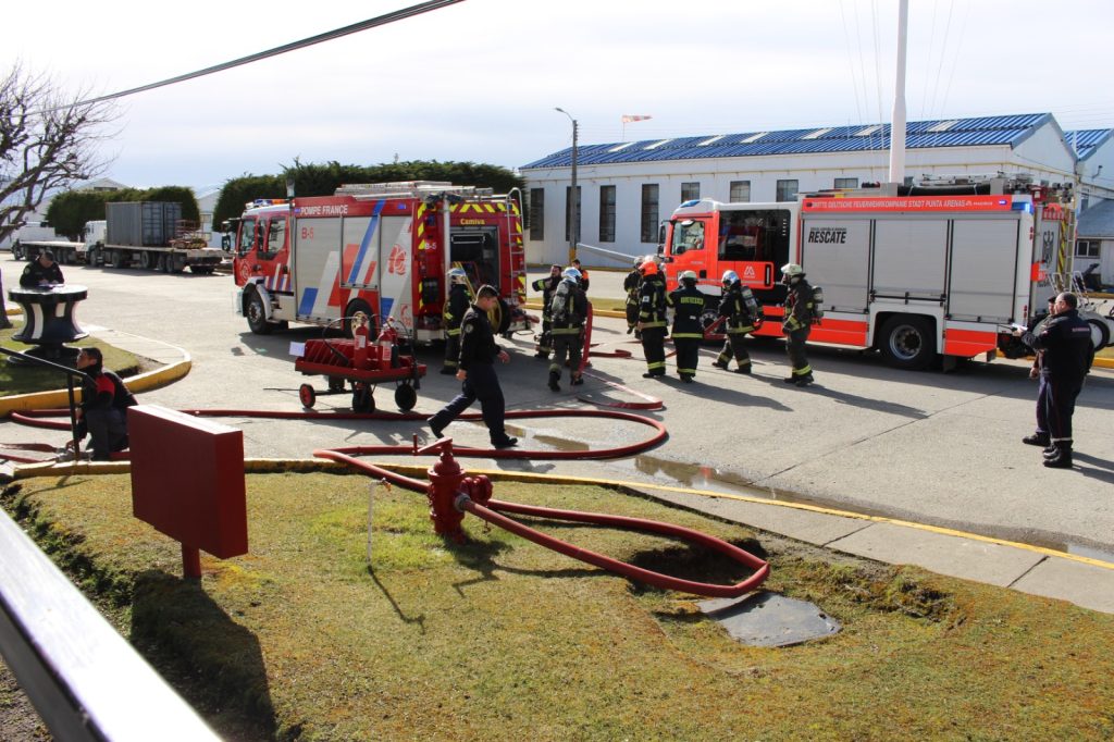 Durante el transcurso de la semana pasada se efectuó en dependencias de la Base Naval “Punta Arenas” un ejercicio de control de incendios con el apoyo del Cuerpo de Bomberos de la ciudad de Punta Arenas.