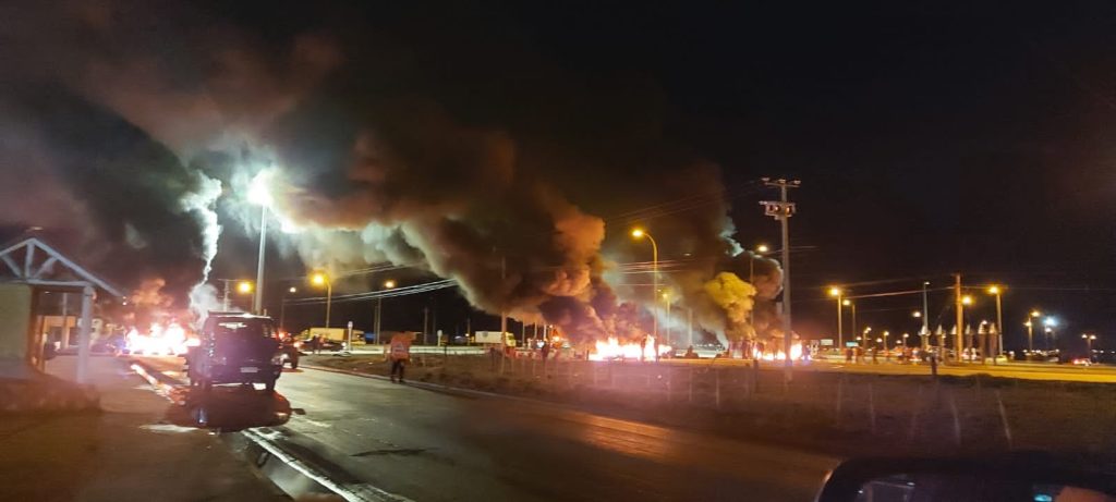 Enfrentamientos se producen entre pescadores artesanales y Carabineros en Ruta 9 Norte de Punta Arenas