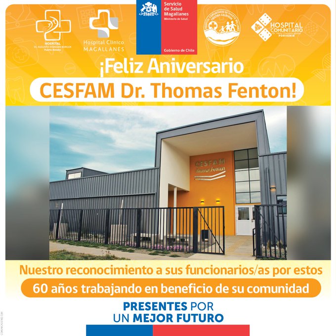 60 años de servicio a la comunidad cumple hoy el CESFAM Thomas Fenton de Punta Arenas Ovejero Noticias 3 de octubre de 2023 NOTICIAS, PUNTA ARENAS, SALUD PUBLICA, TITULARES Con nuevas instalaciones en el sector suroriente de nuestra ciudad, hoy se cumplen 60 años de servicio de salud primaria a la comunidad del CESFAM Thomas Fenton de Punta Arenas. CompartirTwittearCompartirPin0 Compartir